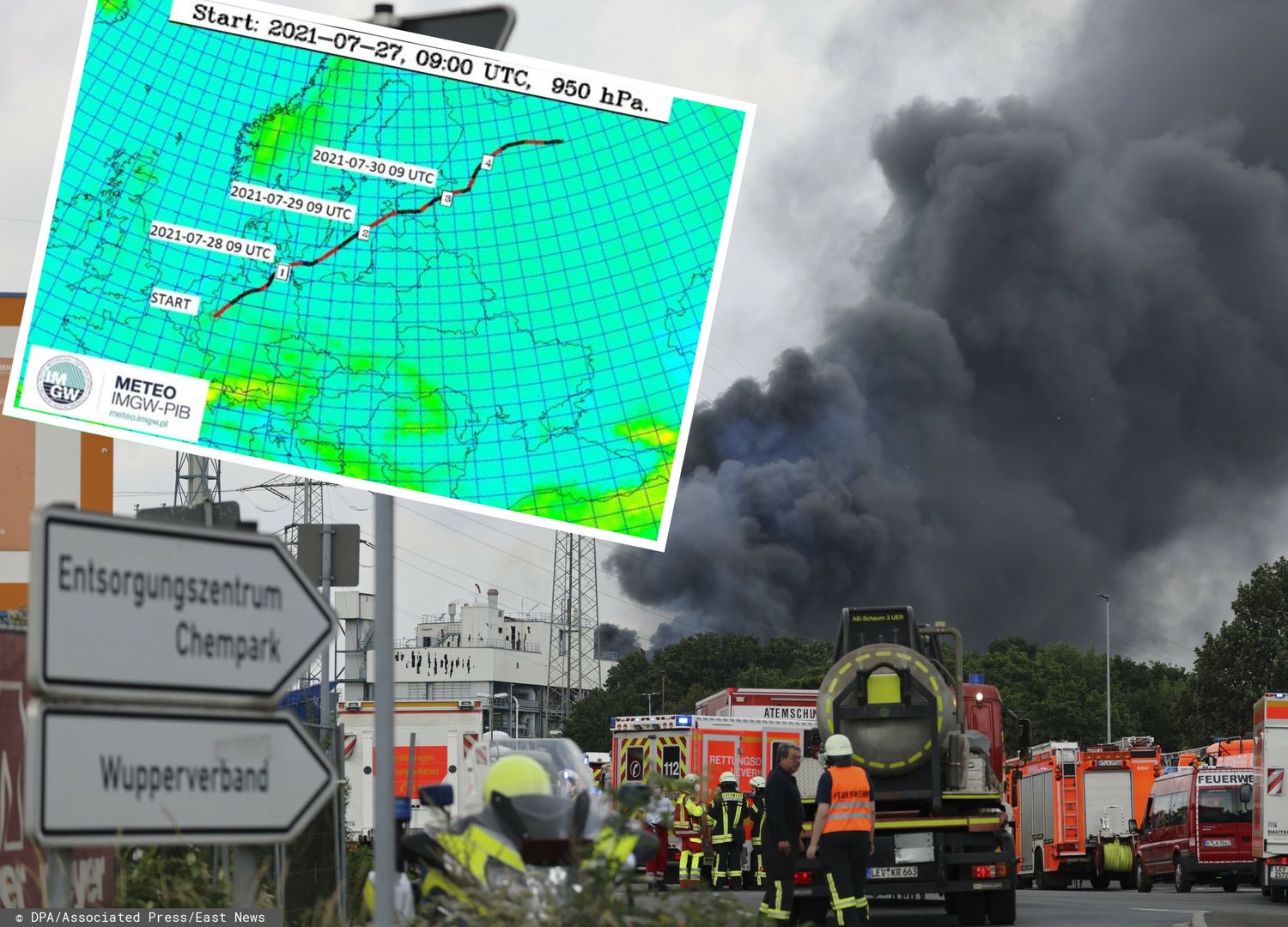 / Wybuch W Leverkusen, Tokio 2020: Grzegorz Fijałek/Michał Bryl - Marco Grimalt ... : Nad koncernem bayer unosi się ogromny słup dymu.